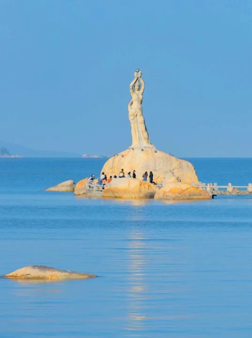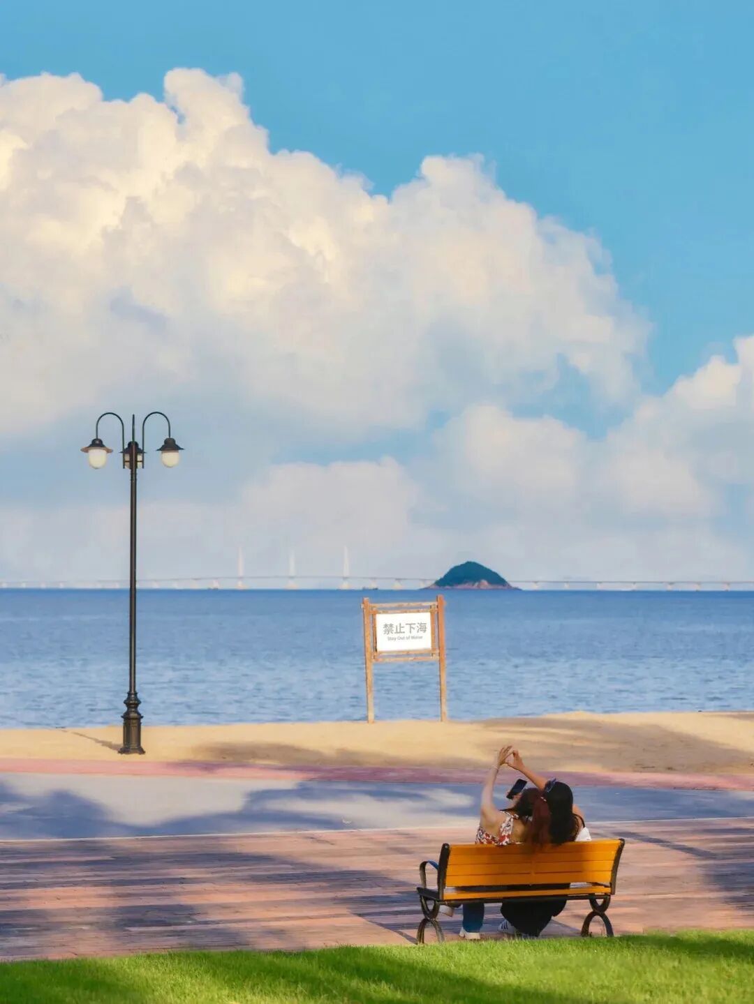 去看看蓝白相间的爱情邮局,海风拂过,有点像是圣托里尼;去仰望淳朴善良的珠海渔女,听当地人讲讲神像背后的故事。