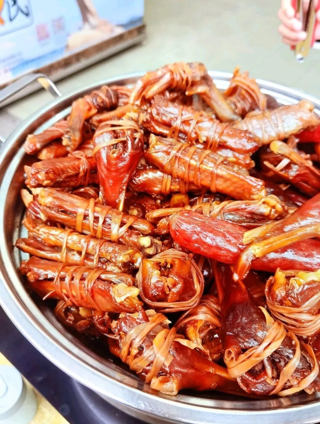 鸭扎包,其实是拿腊鸭肠,捆扎住腊鸭脚,腊鸭肝,腊鸭舌和腊肥猪肉,算是把鸭子吃得明明白白的。