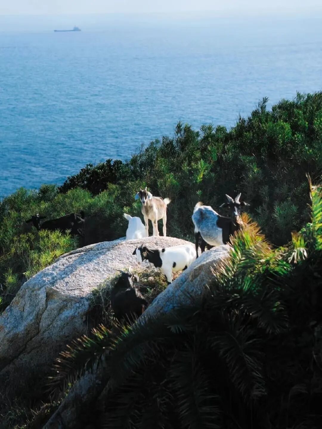 运气好的话,还会在山崖间,偶遇三两成群的小羊,吃着草,晒着太阳,也不怎么怕人,像是山海间自由自在的小精灵。