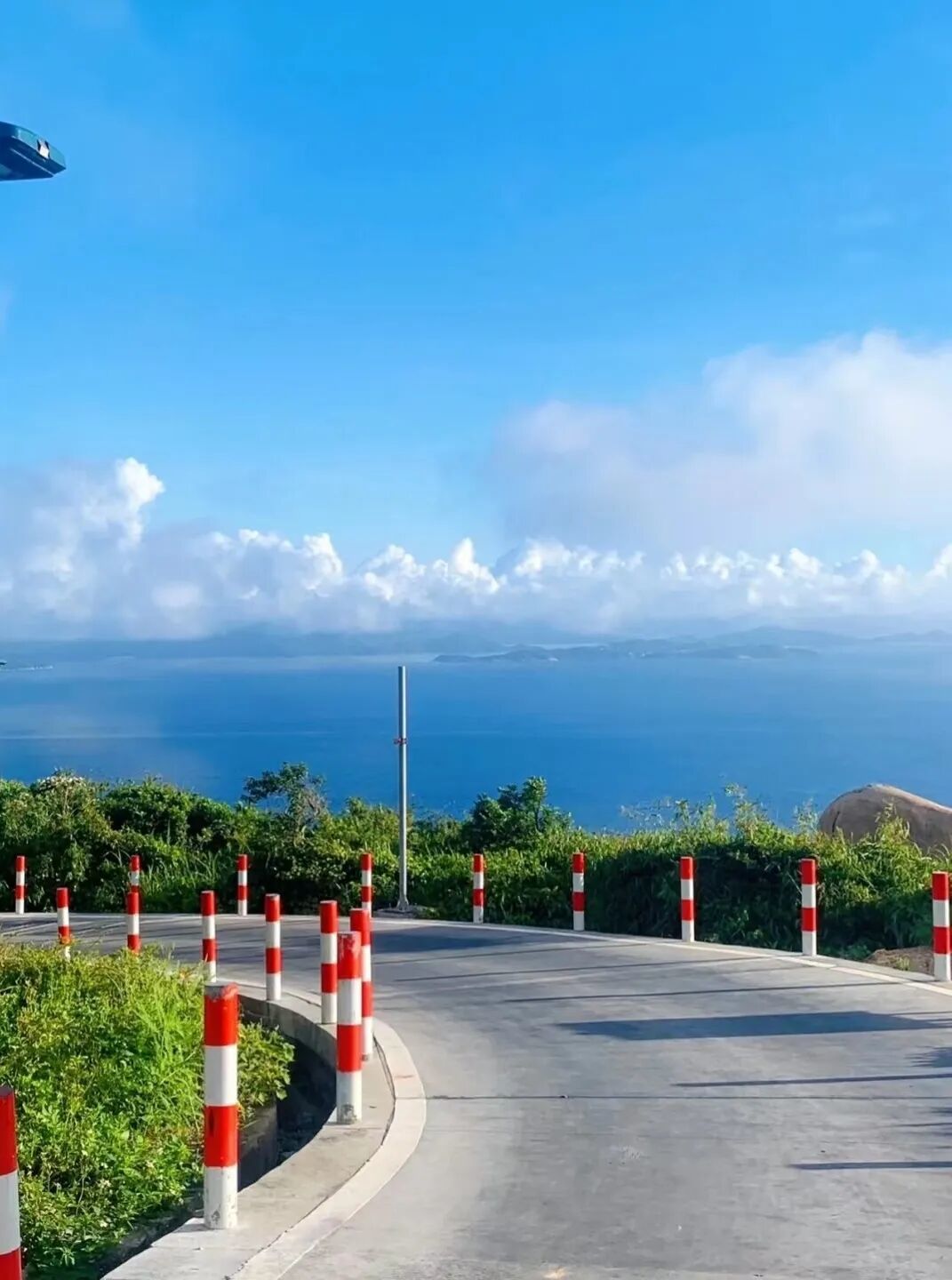 或许是因为离岸边足够远,这里的海水蓝得实在纯粹,朵朵白云低垂,大海一望无垠,让人只想静静地看着这片海,沿着环海路,走到世界的尽头。