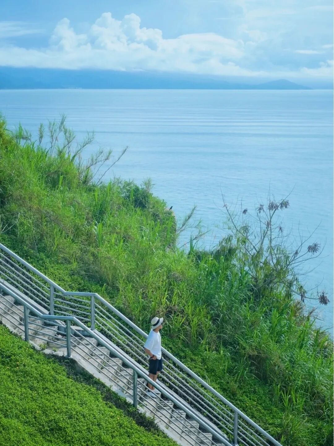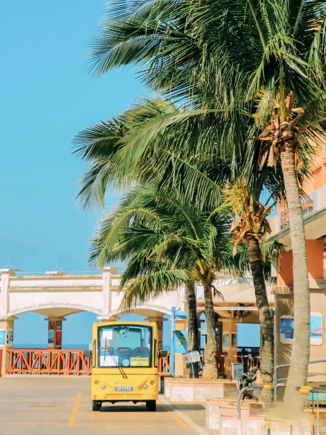 你可以坐上观光车,沿着观海长廊,一路驶向海边,呼呼海风穿过发丝,每个转角都是蓝天大海,像是电影里的场景!