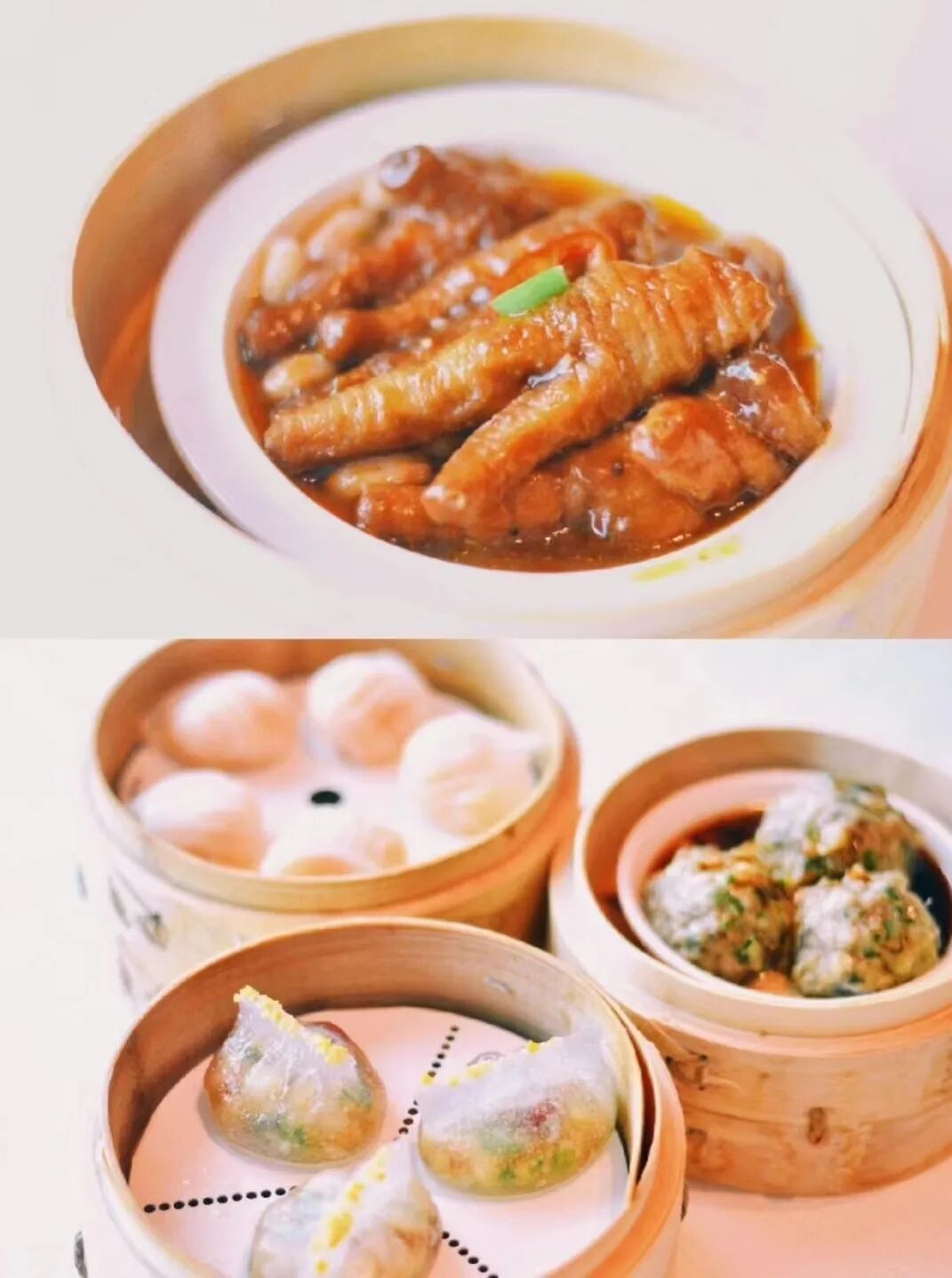 他家是本地的老牌茶楼,早茶和晚茶都有,推荐招牌虾饺皇,皮子超级薄,虾仁塞得满当,蒸凤爪也很软糯入味!