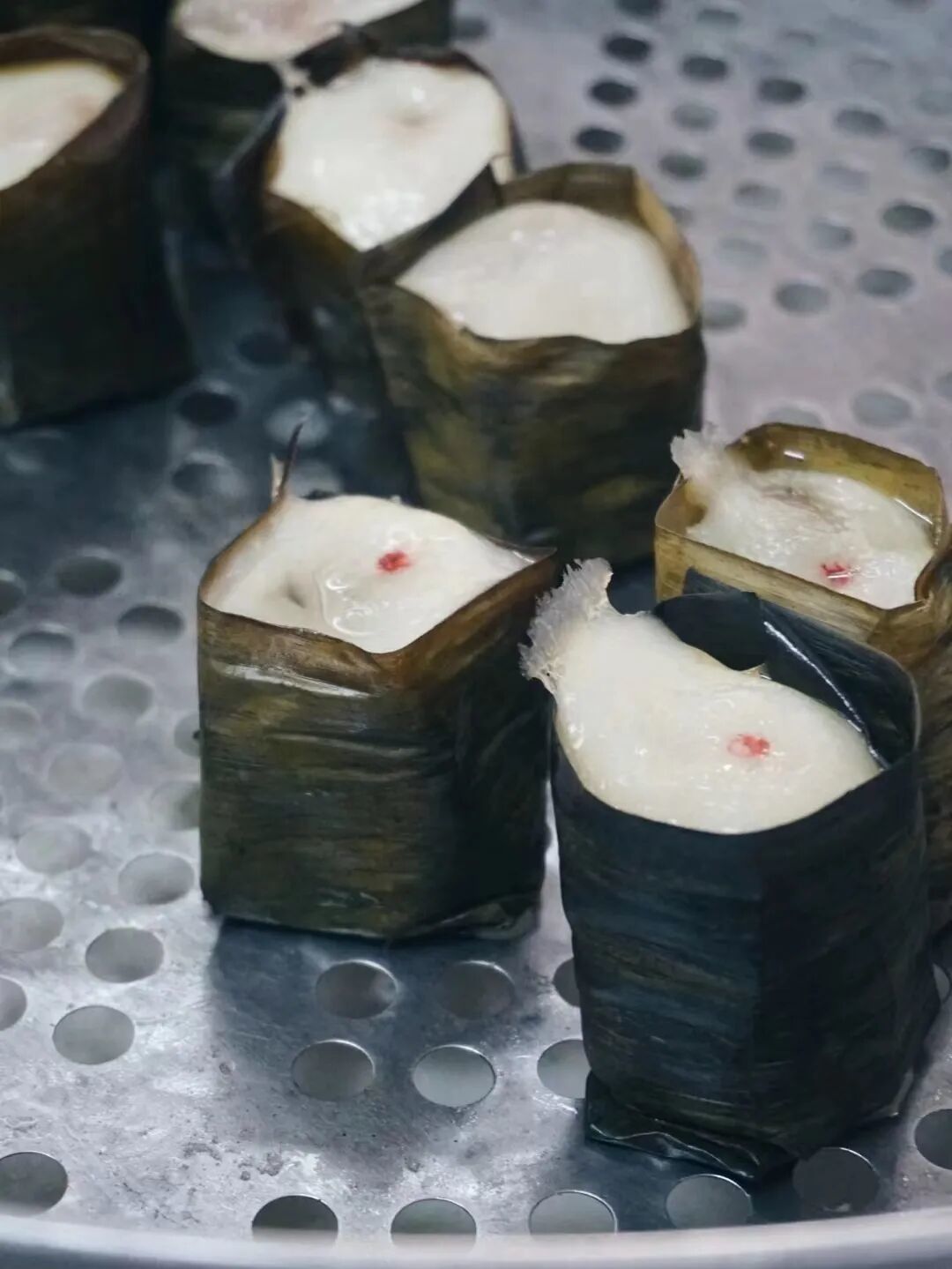 不少点心还会放在粽叶上蒸制,咬上一口,皮子软糯,馅料饱满,带着淡淡的草木清香,绝对会让糯叽叽爱好者狂喜!