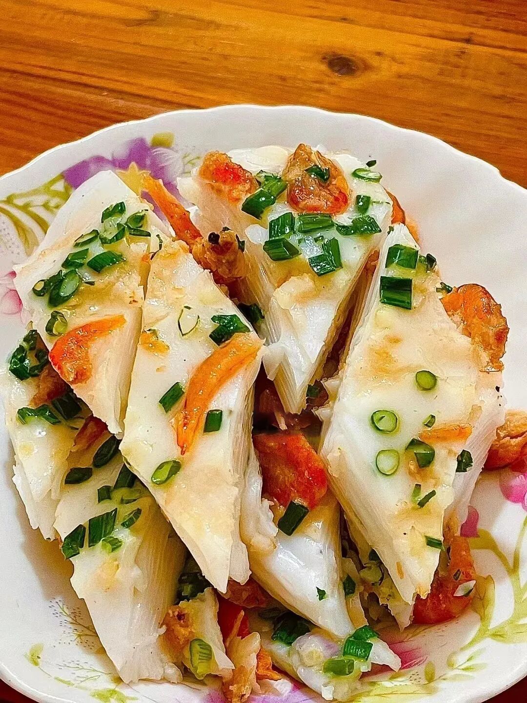 每一层都软糯鲜香,带着虾特有的鲜味和葱花的香气,沾上些许秘制酱油,好吃得停不下来。