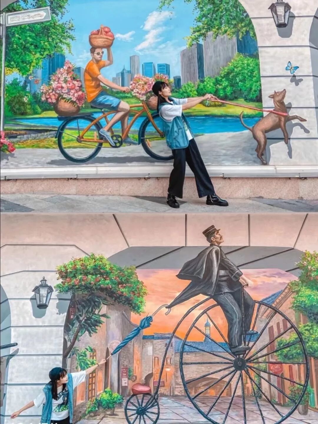 不少壁画还是3D的,挑一个好的角度,就能成为画中的一员,仿佛与壁画在互动一般。