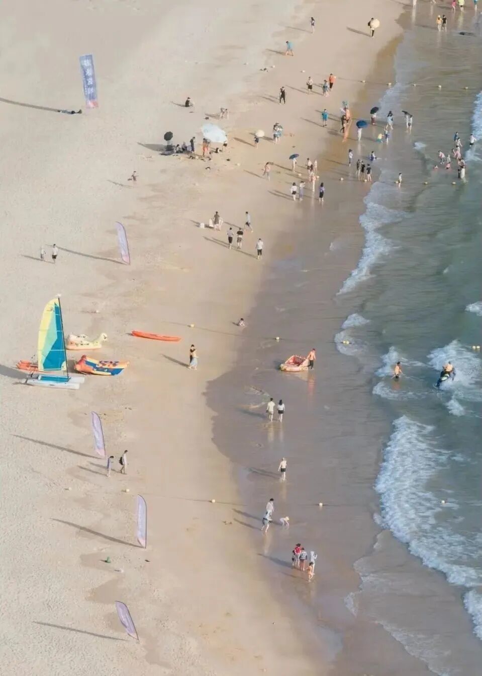 去踩踩平坦的香炉湾沙滩,看孩子们挖沙嬉戏,去登上新建的城市阳台,俯瞰整片香炉湾被大海拥抱,蔚蓝海水是那么静谧。