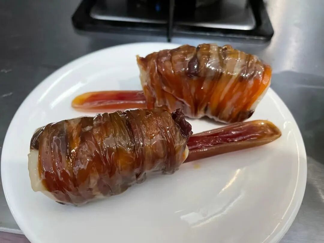 已有100多年历史的横山鸭扎包,也是广东的非遗美食,端上桌的刹那,就有扑鼻的腊香,口感也格外鲜美。