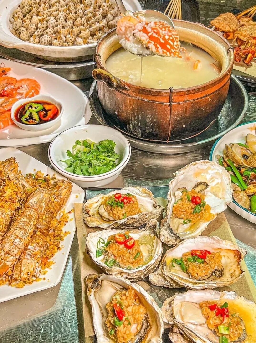 鲜活的鱼虾蟹贝,绝对会挑得你眼花缭乱,可以自备一个电子秤,买上食材,去周边的海鲜店加工。
