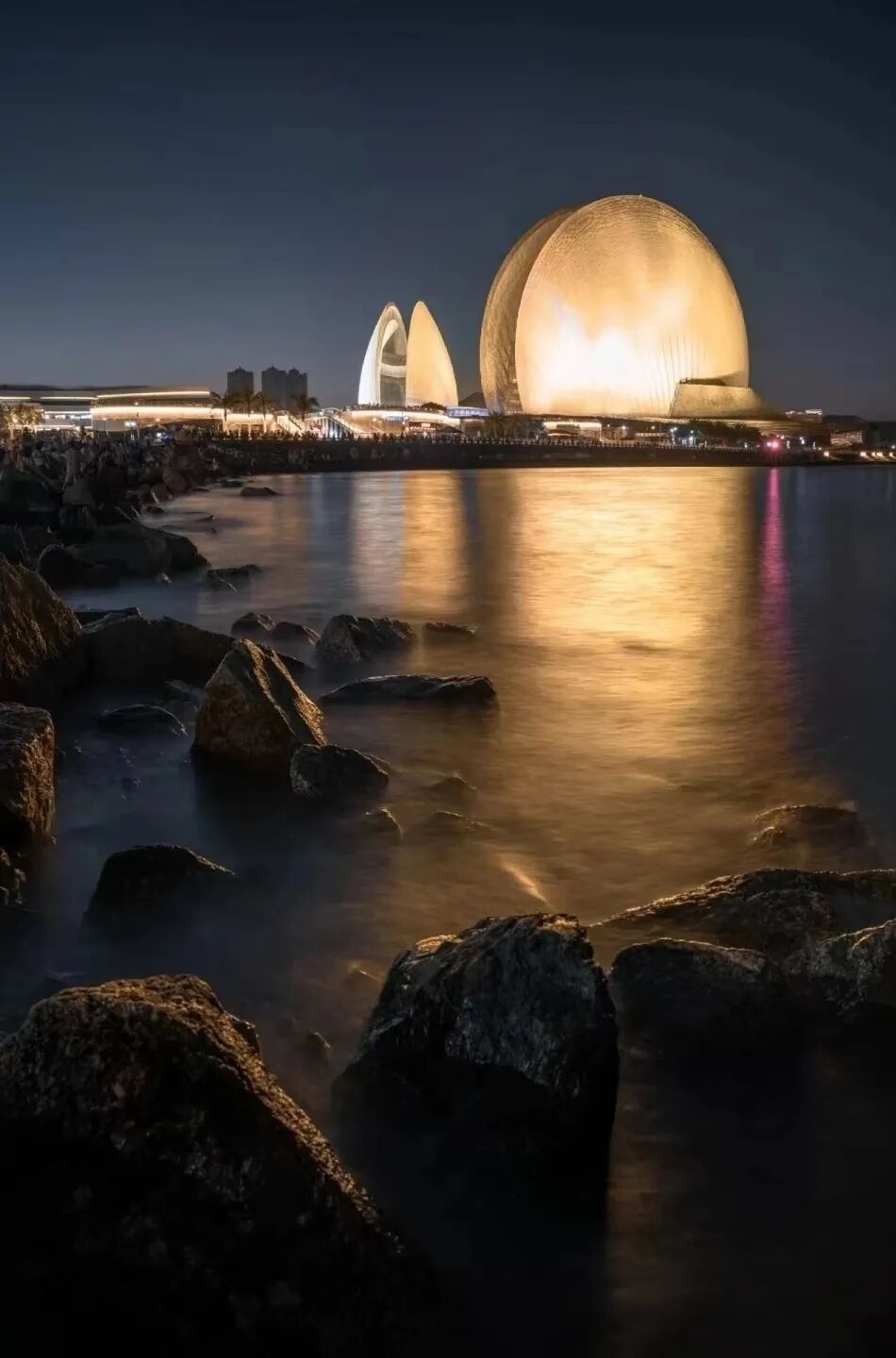 终点则是建在岛上的日月贝歌剧院,纯白的建筑就矗立在海边,像是被海浪推上岸的两扇贝壳,待到夜晚,灯火为日月贝染上了一层微黄的光晕,圣洁而温暖。